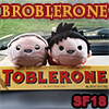 Description: Bokuto and Kuroo tsums on top of a toblerone bar with the caption "brobloerone"